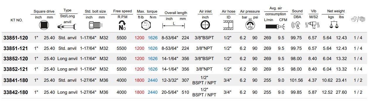 1″DR.STD AIR IMPACT WRENCH 1200FT/LBS(1626NM)