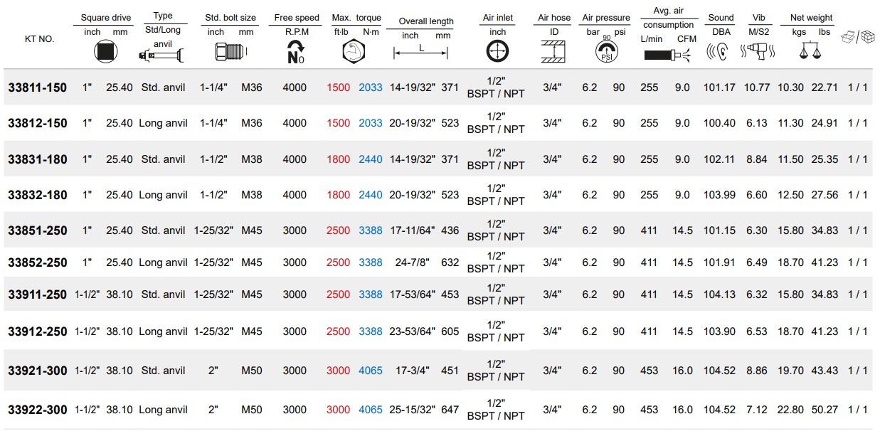 1"DR.EXT AIR IMPACT WRENCH 1500FT/LBS(2033NM)