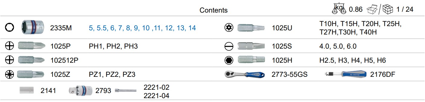 39PC. 1/4″ DR. Socket Set