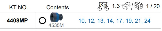 8PC.1/2″DR. IMPACT SOCKET SET 6PT METRIC BLACK